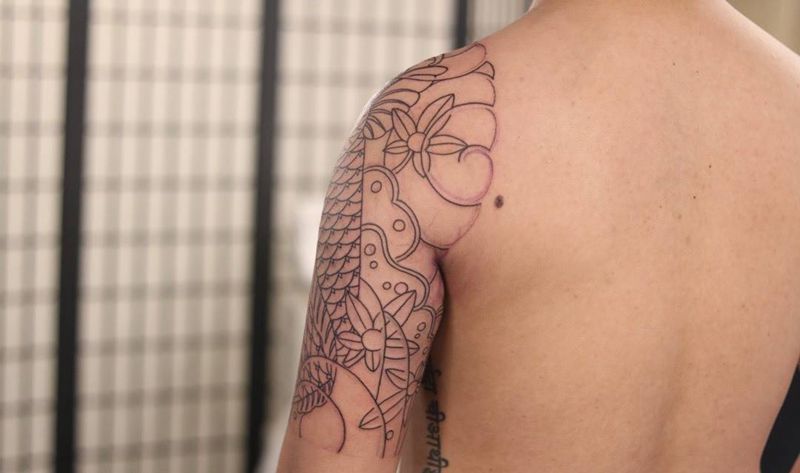 当前位置: 首页 >湖北省襄阳市纹身店-澜墨刺青纹身图案>鲤鱼半胛线条纹身图片