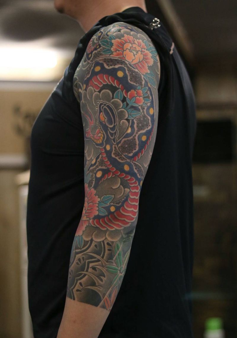 当前位置: 首页 >湖北省襄阳市纹身店-澜墨刺青纹身图案>伝統紋身 蛇 牡丹纹身图片