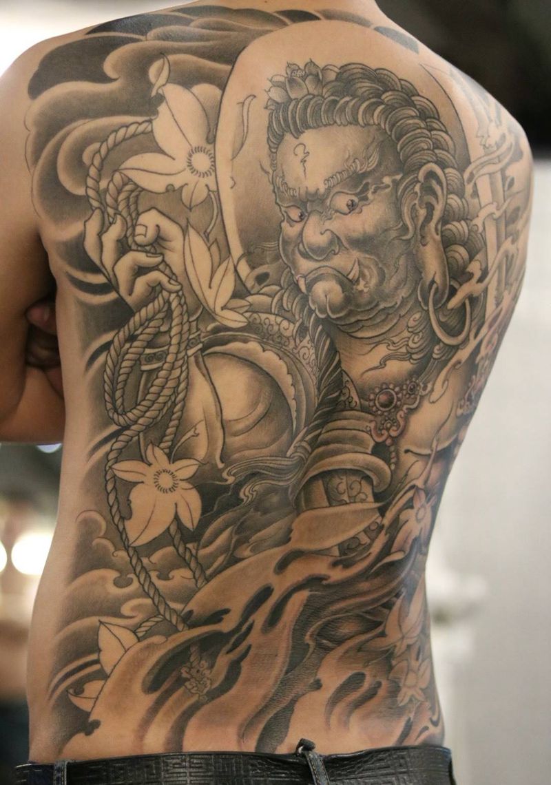 当前位置: 首页 >湖北省襄阳市纹身店-澜墨刺青纹身图案>不动明王纹身图片_传统背部成品人物纹身图案