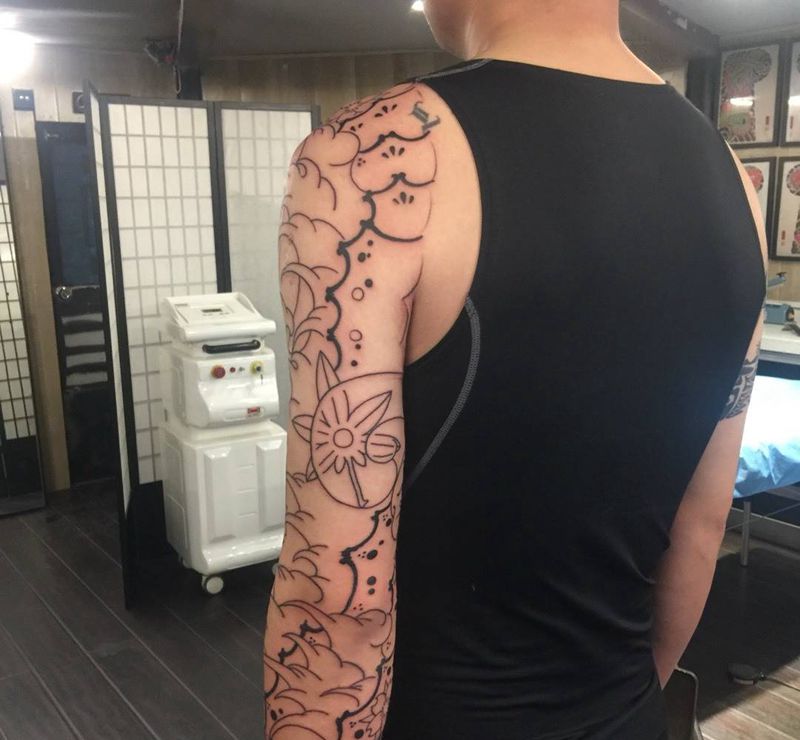 当前位置: 首页 >湖北省襄阳市纹身店-澜墨刺青纹身图案>浪臂第一回合线条纹身图片_手臂传统原创人物成品纹身图案