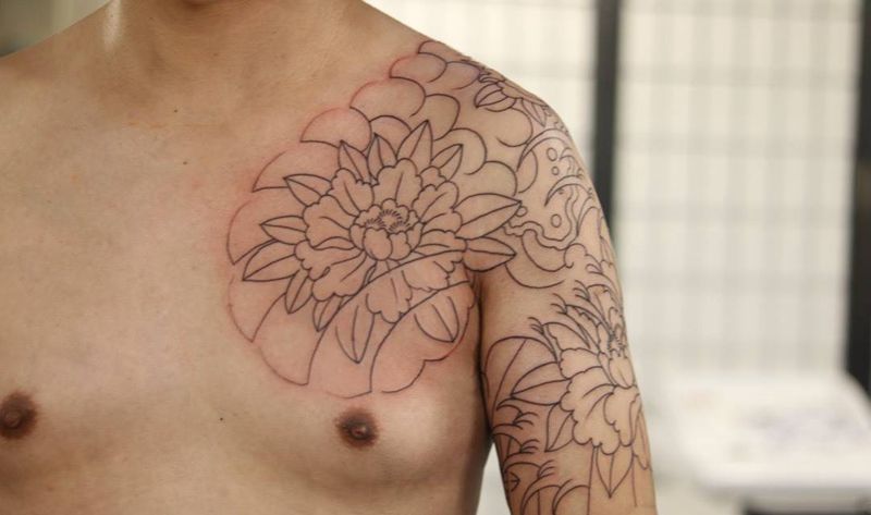 当前位置: 首页 >湖北省襄阳市纹身店-澜墨刺青纹身图案>牡丹线条完成。纹身图片