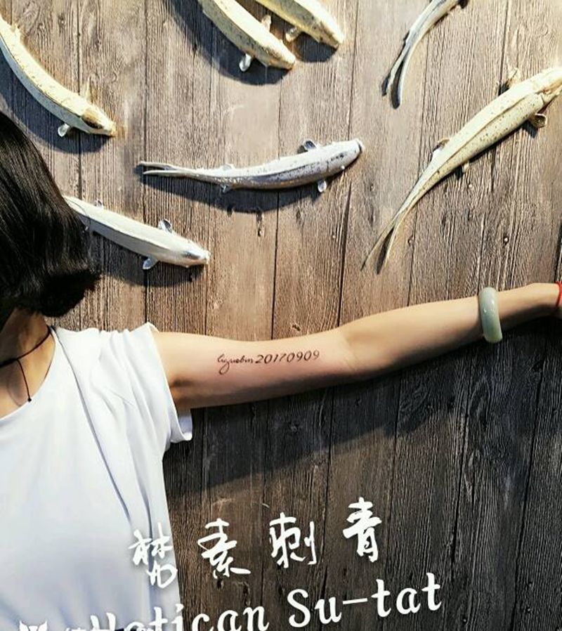 • T家庭图,一家四口生日纪念!纹身图片_手臂纹身图案