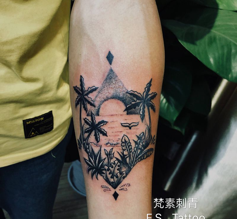 当前位置: 首页 >湖北省武汉市纹身店-梵素刺青纹身图案>风景纹身图片_手臂纹身图案