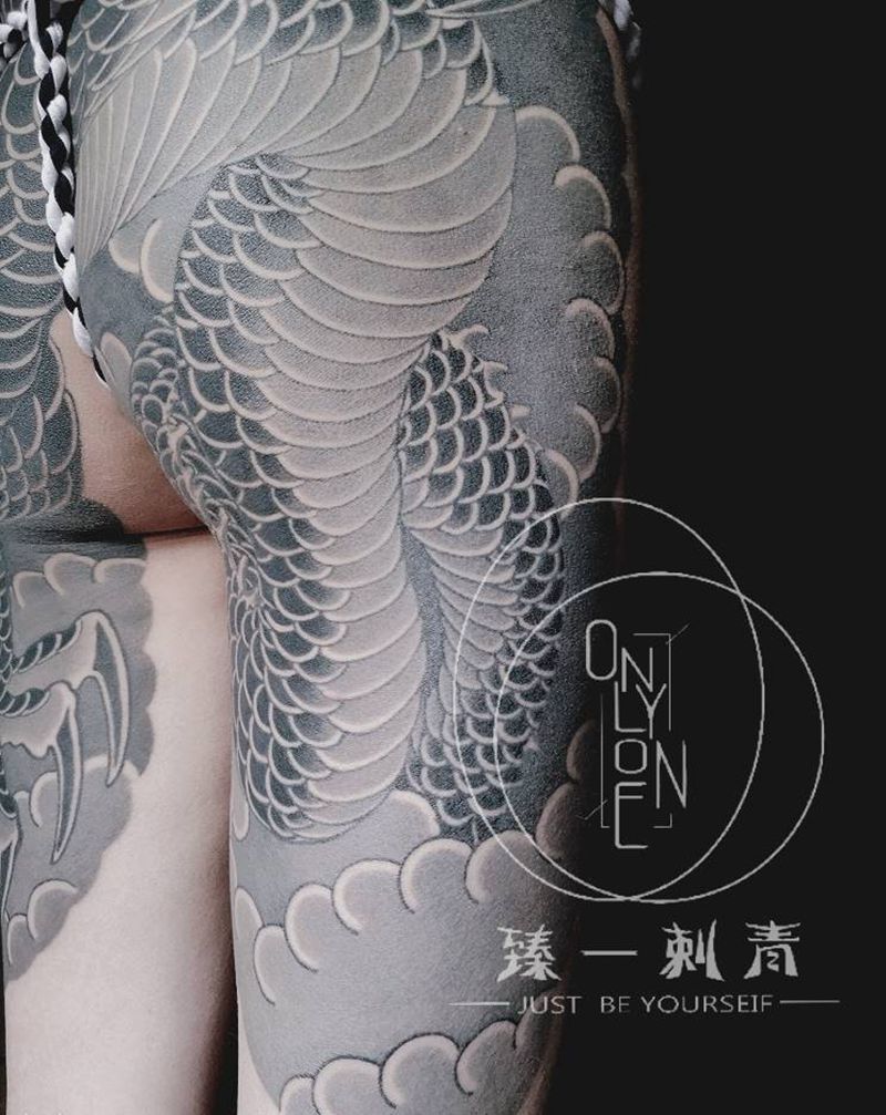 • T网红王老大花腿龙纹身图片_腿部新传统纹身图案