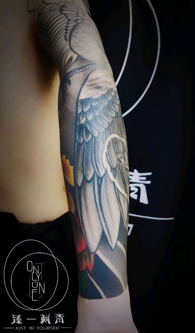 当前位置: 首页 >湖北省襄阳市纹身店-臻一刺青纹身图案>仙鹤花臂未完待续纹身图片_新传统老传统纹身图案