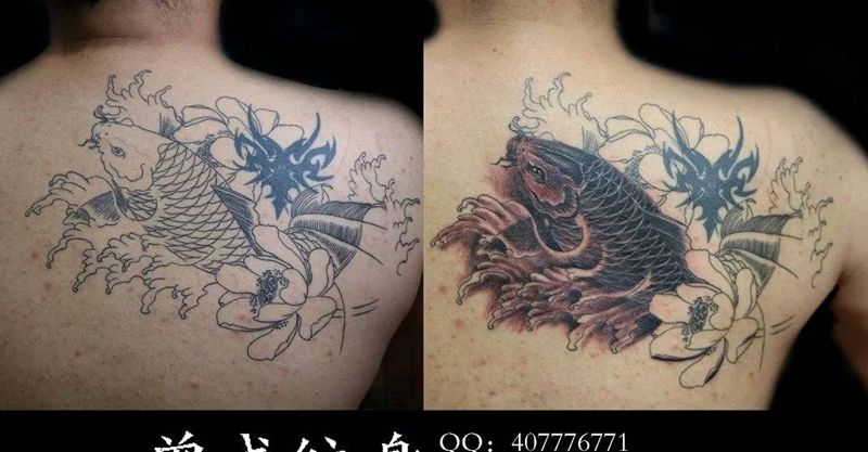 黑灰满背纹身图案