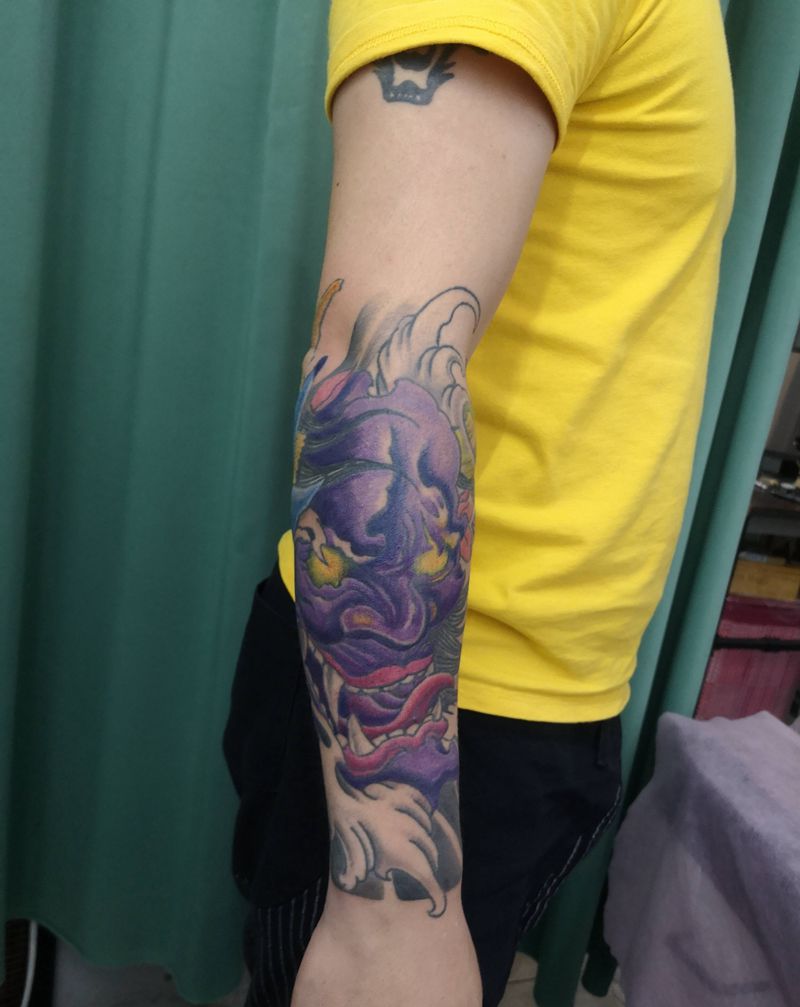 当前位置: 首页 >湖北省十堰市纹身店-刺魂纹身总店纹身图案>近期店内作品纹身图片_手臂新传统纹身图案
