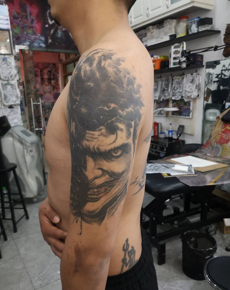 当前位置: 首页 >湖北省十堰市纹身店-刺魂纹身总店纹身图案>近期店内作品纹身图片_手臂新传统纹身图案