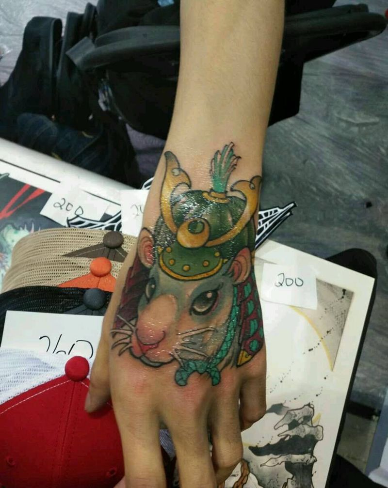 • 手背潮流时尚的玫瑰花眼睛纹身图案