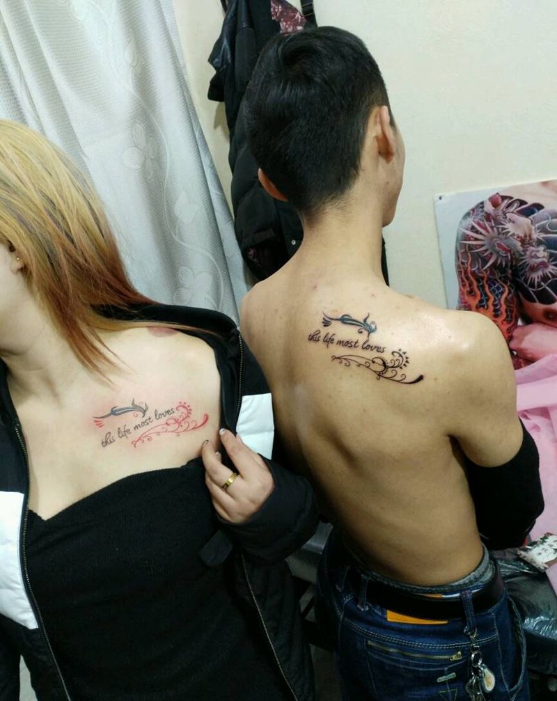 当前位置: 首页 >湖北省十堰市纹身店-刺魂纹身总店纹身图案>情侣款小图纹身图片_肩部胸部清新字符图腾原创花絮生活成品纹身图案