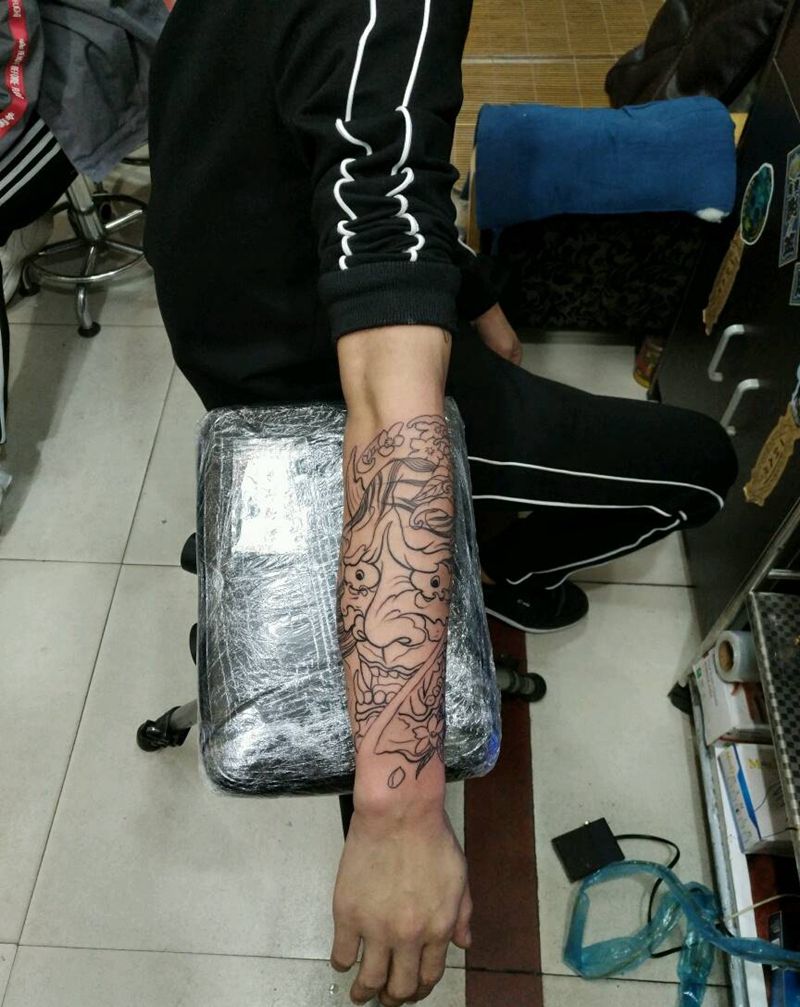 般喏线条纹身图片_手臂传统鬼神宗教原创花絮生活插画纹身图案