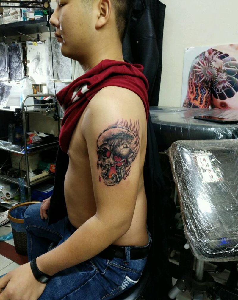 当前位置: 首页 >湖北省十堰市纹身店-刺魂纹身总店纹身图案>骷髅纹身图片_手臂传统鬼神原创花絮生活成品插画纹身图案