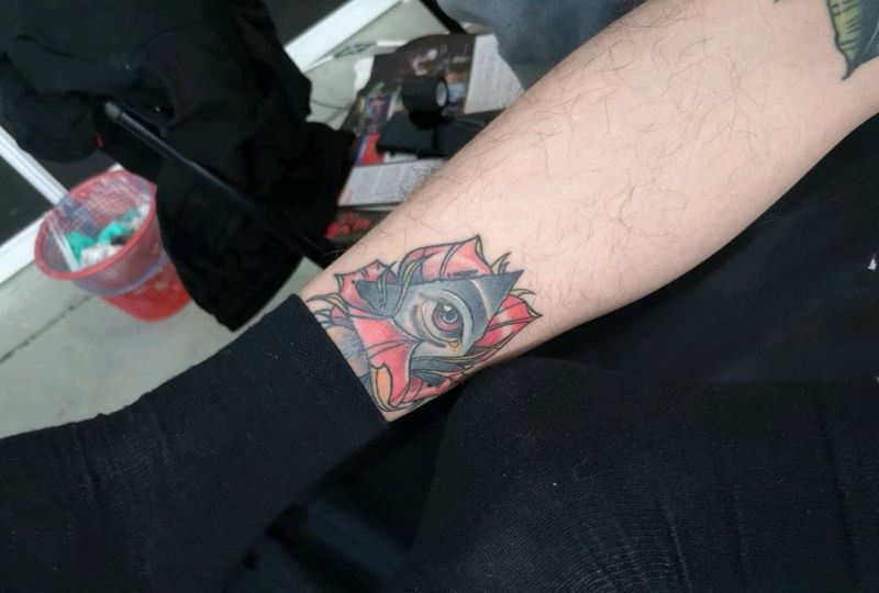 • 手背潮流时尚的玫瑰花眼睛纹身图案