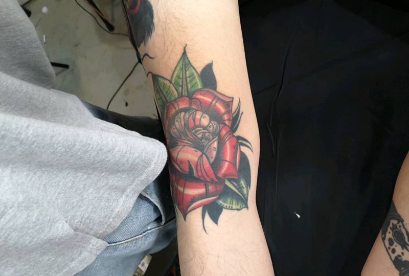 • 手背潮流时尚的玫瑰花眼睛纹身图案