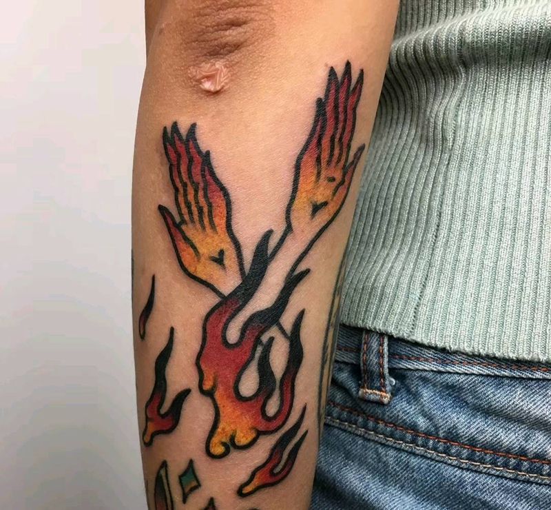 当前位置: 首页 >湖北省十堰市纹身店-刺魂纹身总店纹身图案>小清新纹身图片_手臂Old School纹身图案