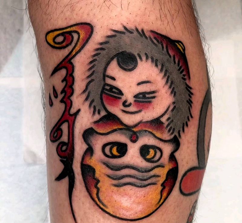 • T包小腿吹火男+阿多福纹身图片_腿部老传统新传统吹火男阿