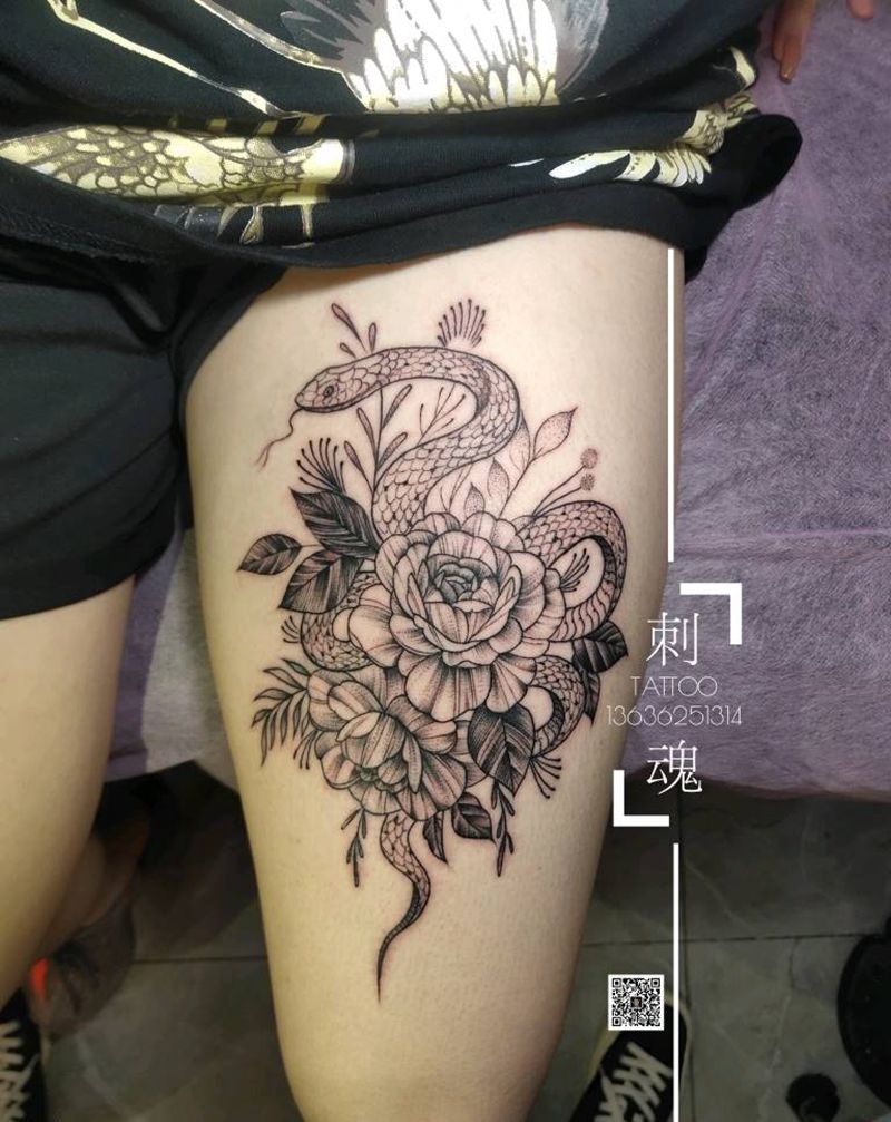当前位置: 首页 >湖北省十堰市纹身店-刺魂纹身总店纹身图案>大腿素花蛇纹身图片_腿部几何点刺纹身图案