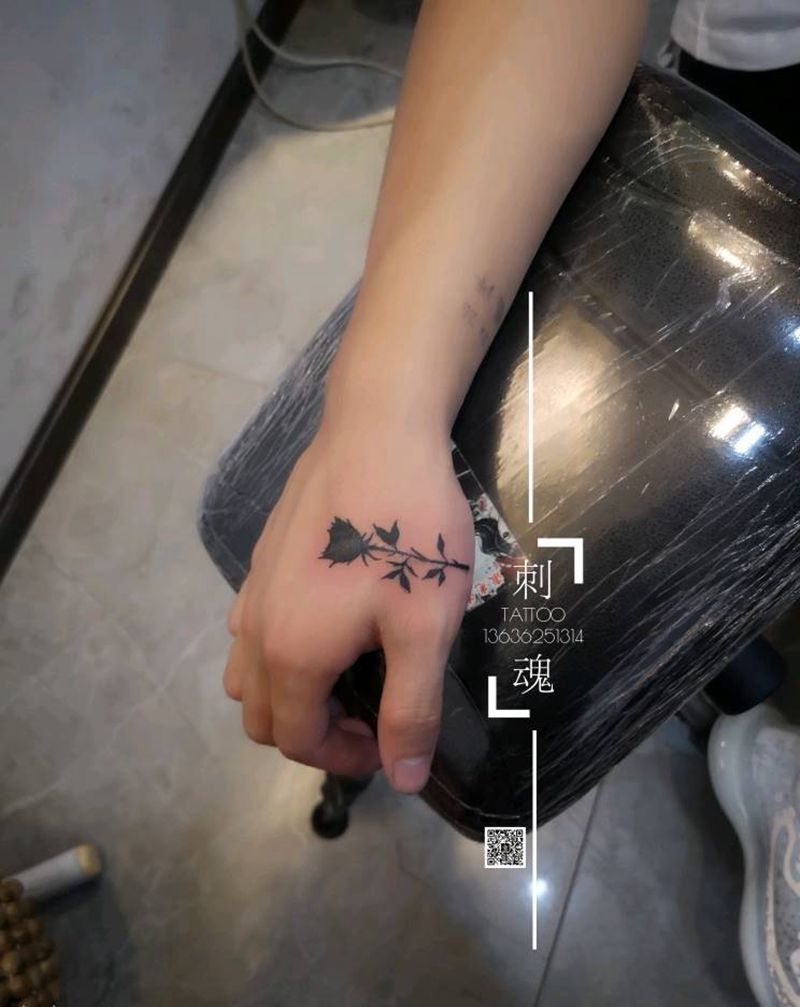 • 手背潮流时尚的玫瑰花眼睛纹身图案