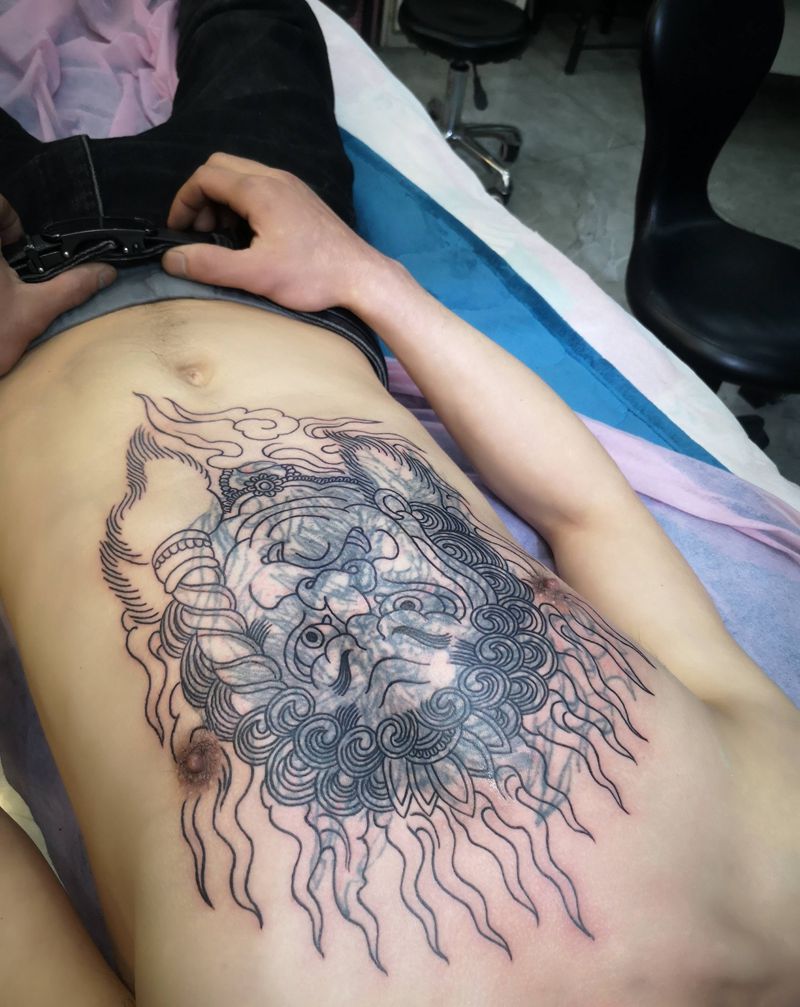 当前位置: 首页 >湖北省十堰市纹身店-刺魂纹身总店纹身图案>刺魂纹身作品花絮纹身图片_胸部新传统纹身图案