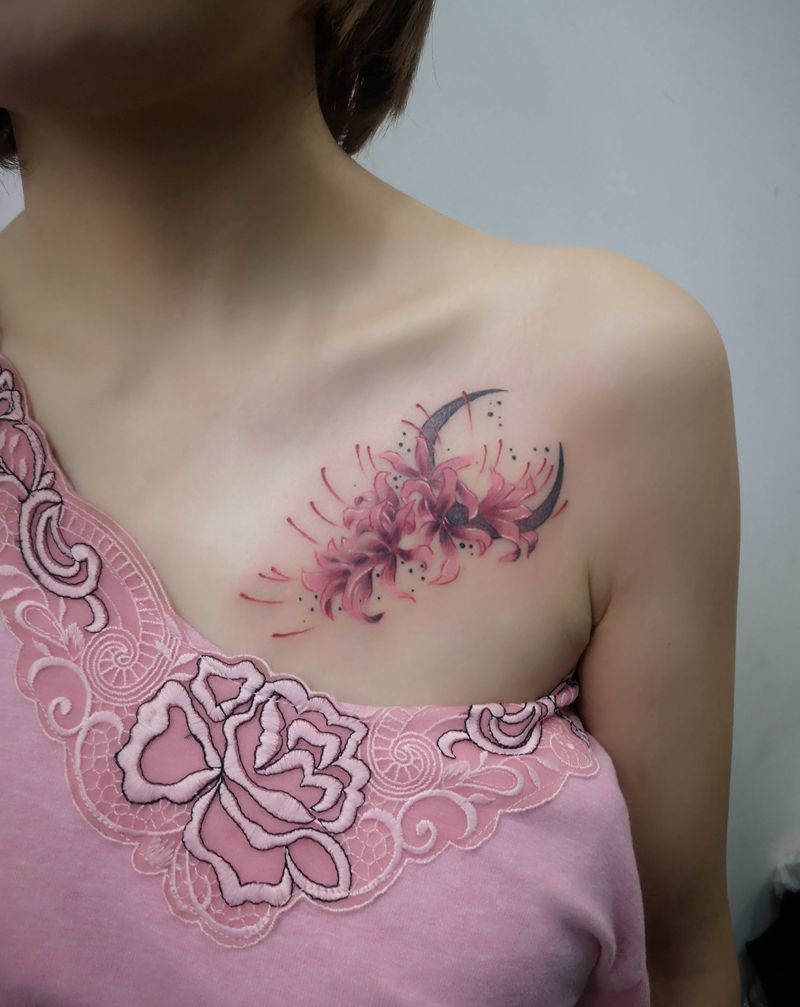 • 女性大花胸纹身_43张霸气漂亮的女性大花胸纹身图案作品