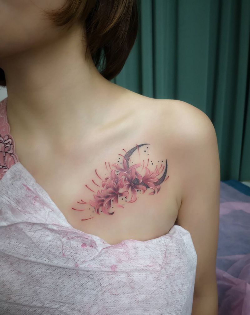 • 女性大花胸纹身_43张霸气漂亮的女性大花胸纹身图案作品