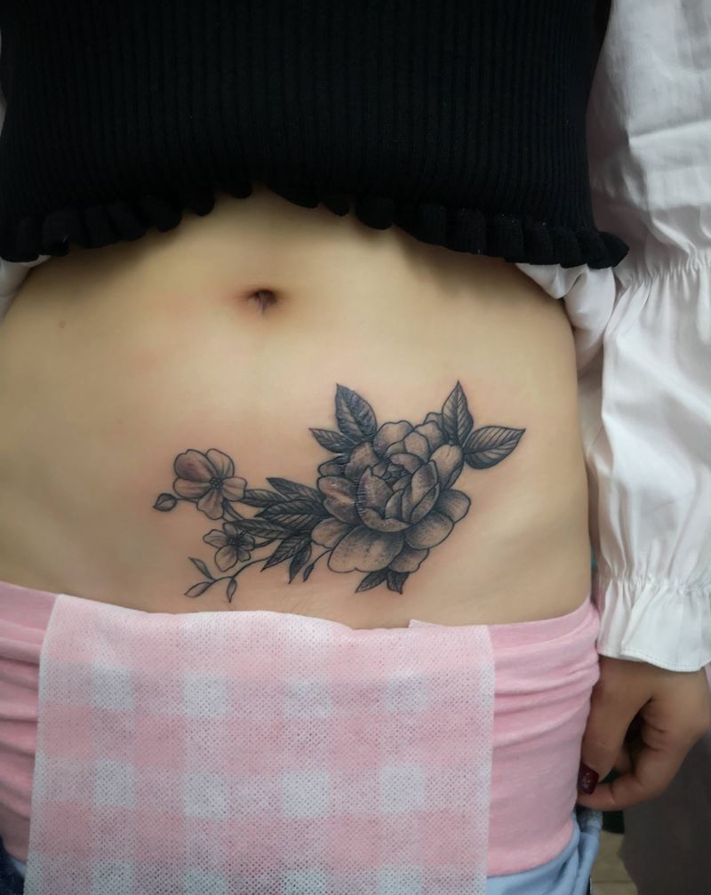 • T关于私处得爱!纹身图片_成品腹部清新字符图腾纹身图案