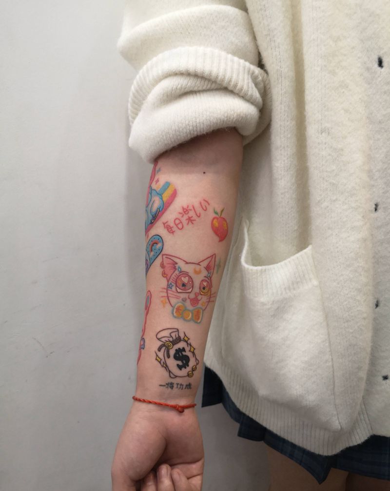 当前位置: 首页 >湖北省十堰市纹身店-刺魂纹身总店纹身图案>近期店内作品纹身图片_手臂新传统纹身图案