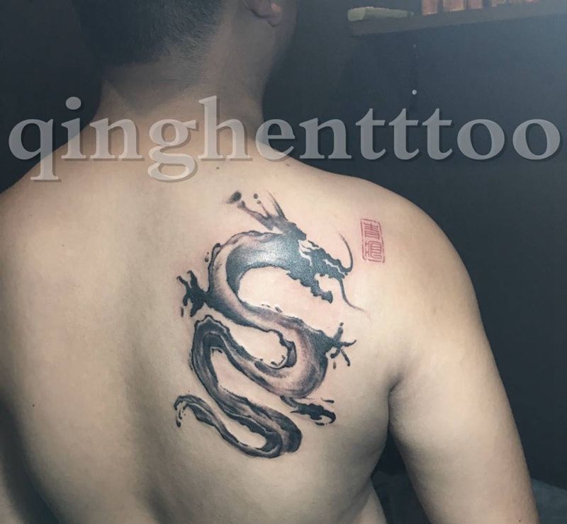 当前位置: 首页 >湖北省黄冈市纹身店-青痕刺青纹身图案>水墨游龙纹身图片