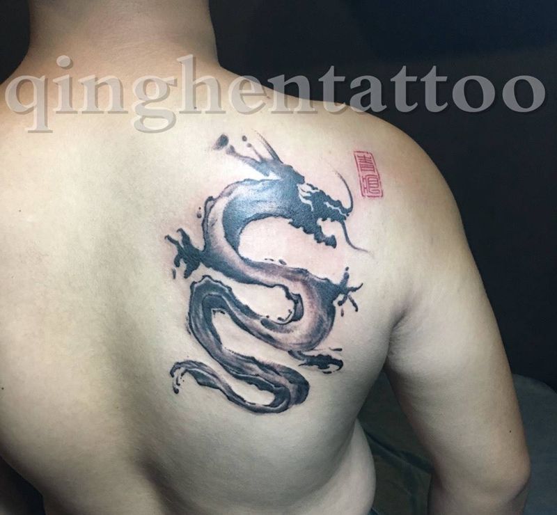 当前位置: 首页 >湖北省黄冈市纹身店-青痕刺青纹身图案>水墨游龙纹身图片