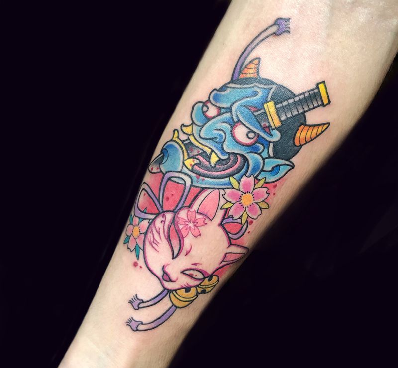 当前位置: 首页 >湖北省黄冈市纹身店-青痕刺青纹身图案>面具纹身图片_手臂纹身图案