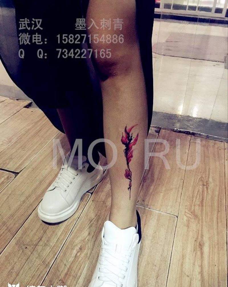 • T网红王老大花腿龙纹身图片_腿部新传统纹身图案
