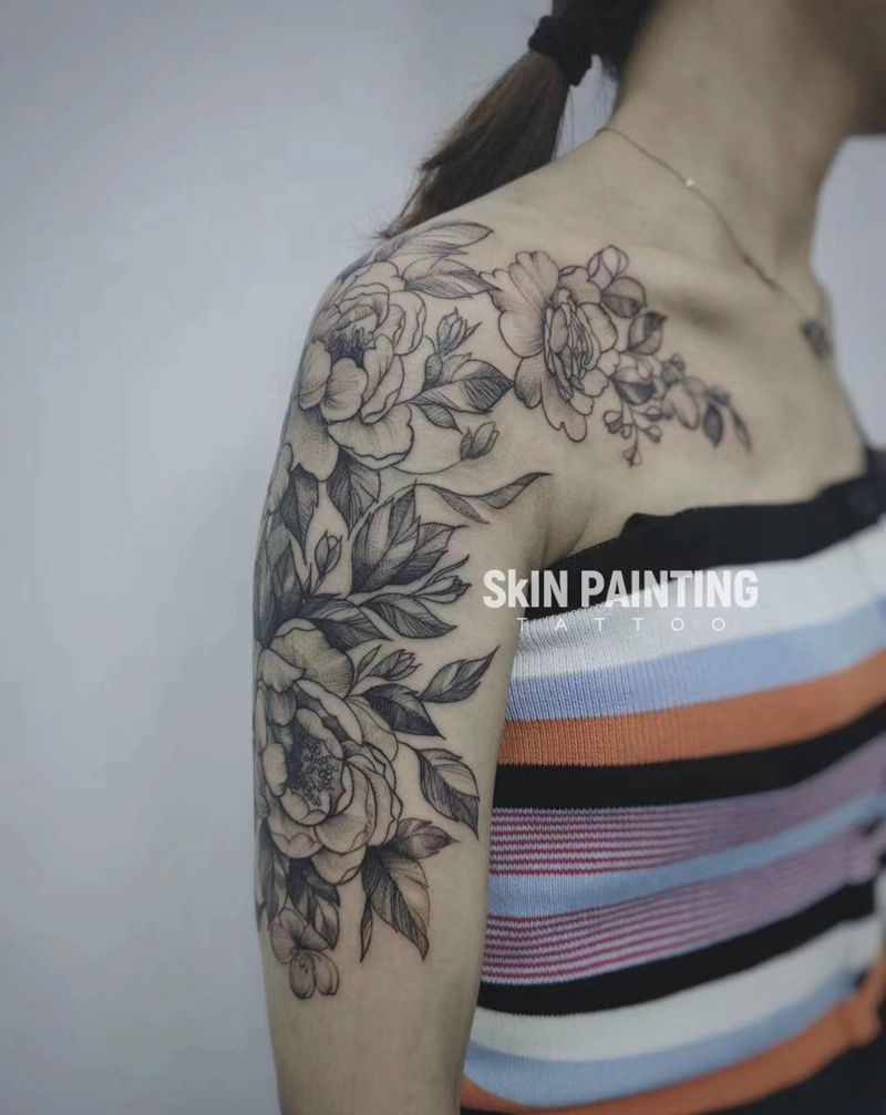 • 女性大花胸纹身_43张霸气漂亮的女性大花胸纹身图案作品