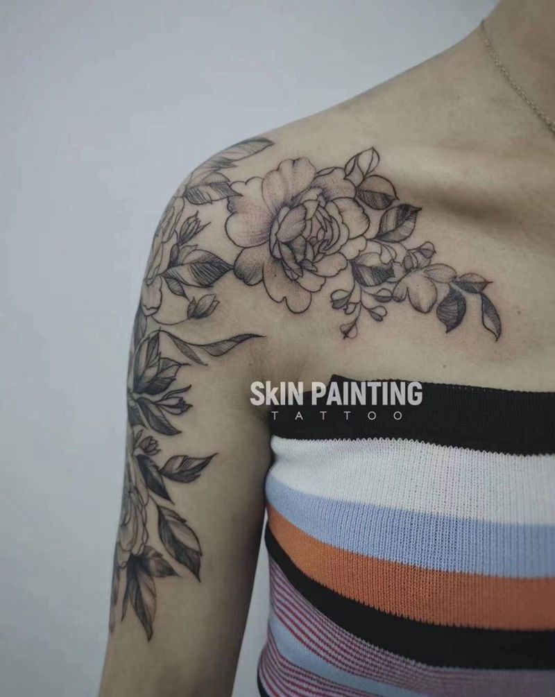 • 女性大花胸纹身_43张霸气漂亮的女性大花胸纹身图案作品