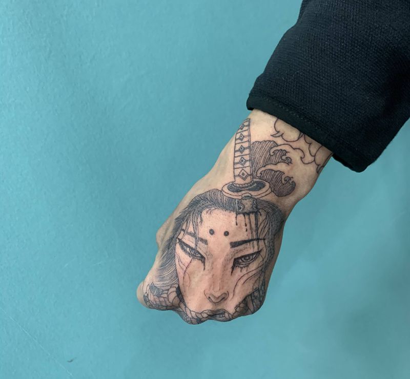生首纹身图片_手部老传统纹身图案