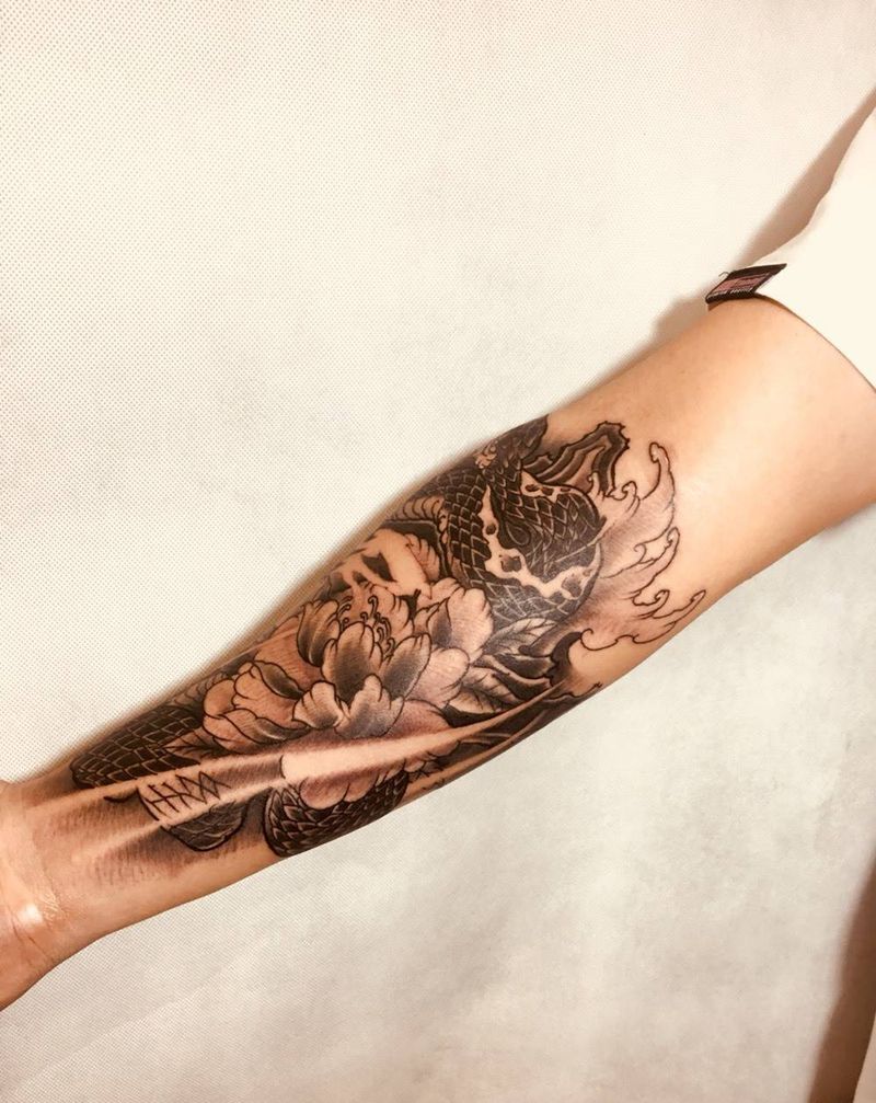 • T网红王老大花腿龙纹身图片_腿部新传统纹身图案