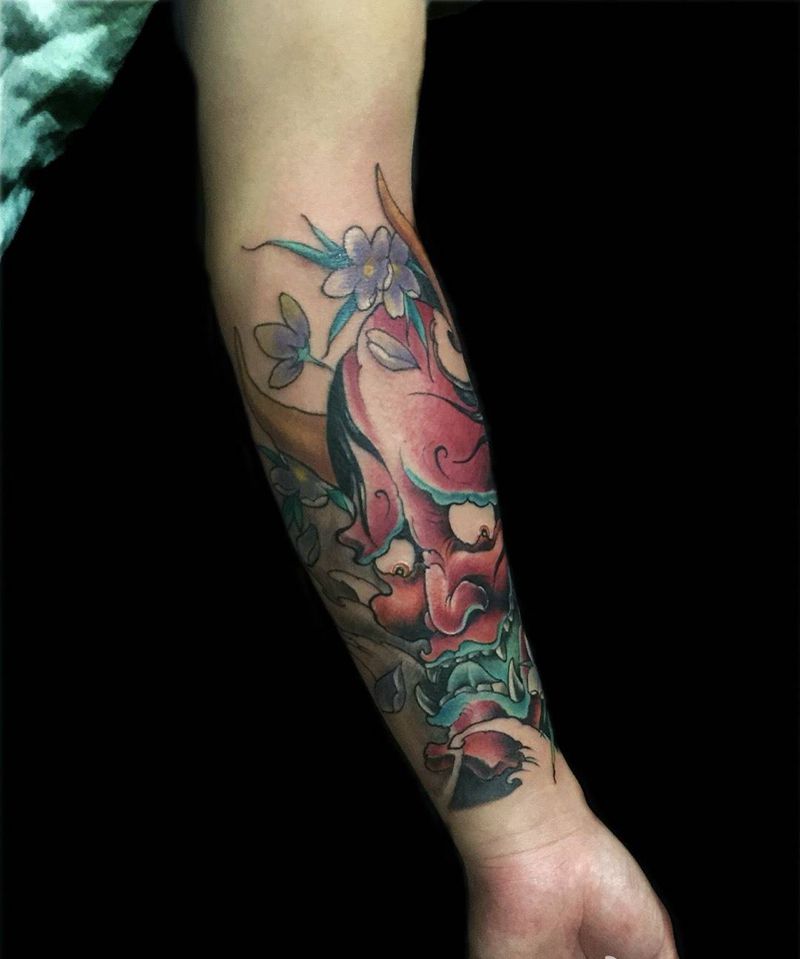小臂单侧般若纹身图片_手臂成品传统鬼神纹身图案