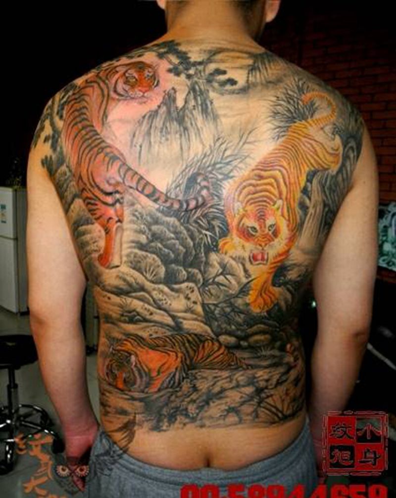 当前位置: 首页 >湖南省长沙市纹身店-长沙小旭纹身纹身图案>北京小旭纹身~三虎...纹身图片_传统国画背部动物纹身图案