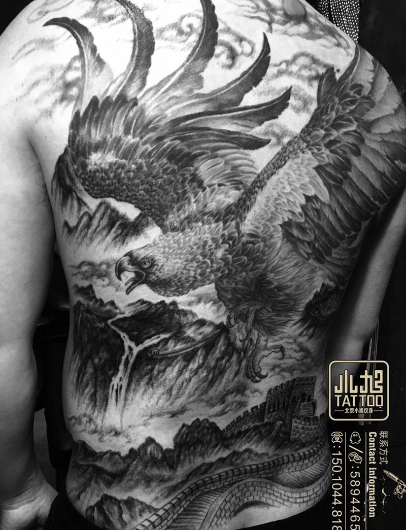 当前位置: 首页 >湖南省长沙市纹身店-长沙小旭纹身纹身图案>雄鹰展翅纹身图片_成品背部传统写实动物植物纹身图案