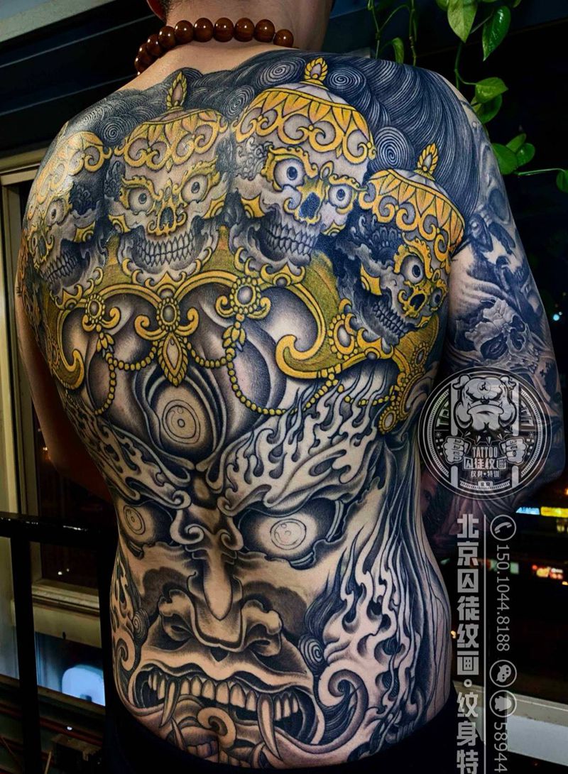 当前位置: 首页 >湖南省长沙市纹身店-长沙小旭纹身纹身图案>大黑天…未完!纹身图片_背部新传统大黑天纹身图案