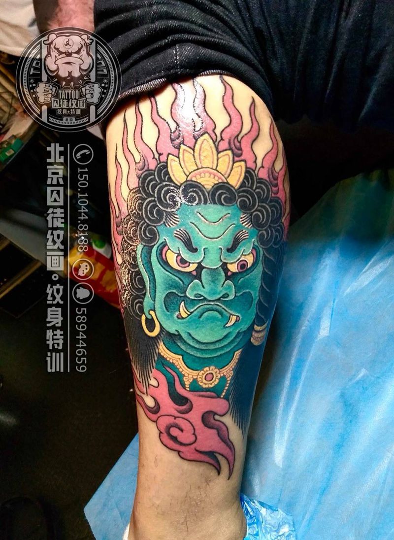 当前位置: 首页 >湖南省长沙市纹身店-长沙小旭纹身纹身图案>不动明王纹身图片_腿部老传统不动明王纹身图案