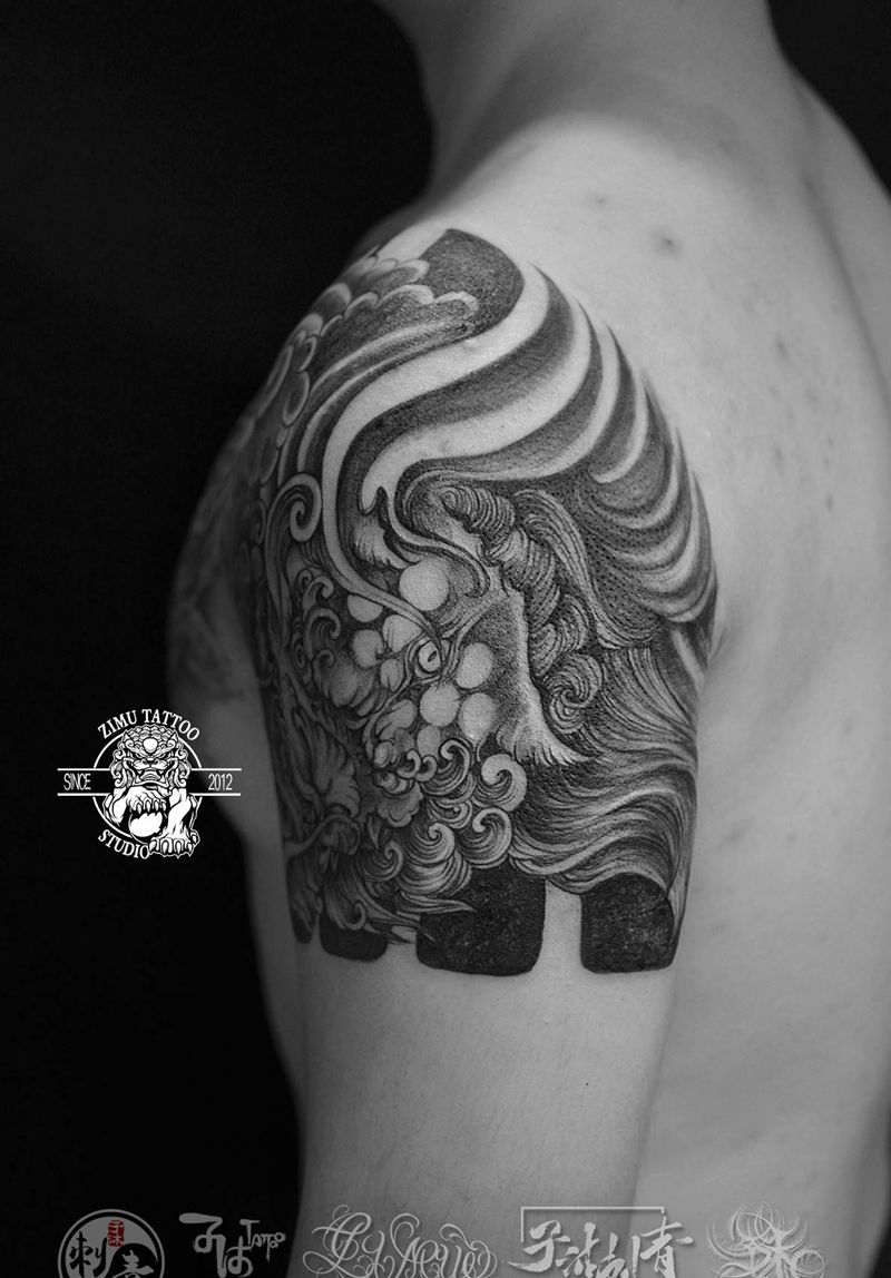 半甲胸口麒麟唐狮新传统纹身图片_手臂胸部新传统老传统纹身图案