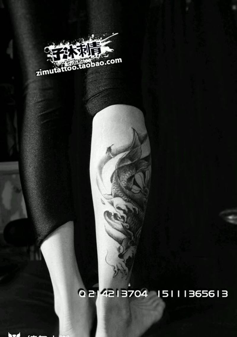 • T网红王老大花腿龙纹身图片_腿部新传统纹身图案