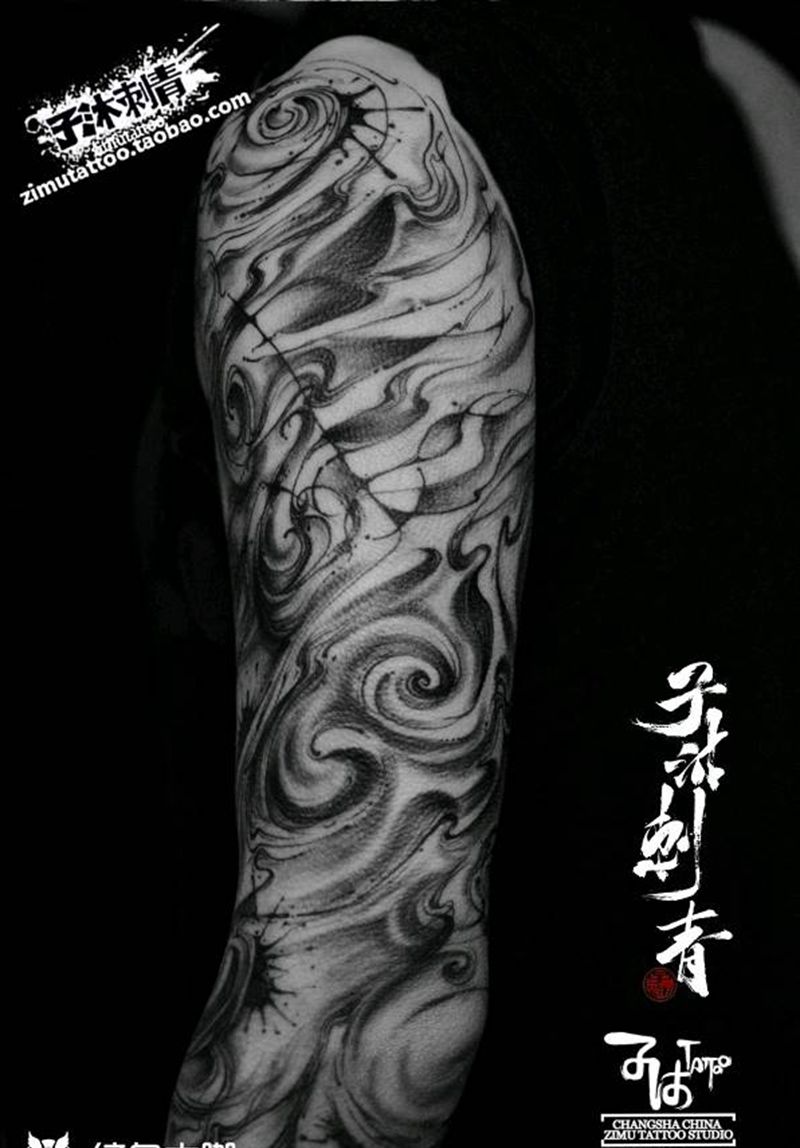 当前位置: 首页 >湖南省长沙市纹身店-子沐刺青艺术纹身工作室纹身图案>全花臂纹身 泼墨抽象飞线写意即纹身图片_手臂水墨几何纹身图案