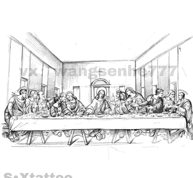 最后的晚餐 达芬奇纹身图片_背部欧美写实纹身图案