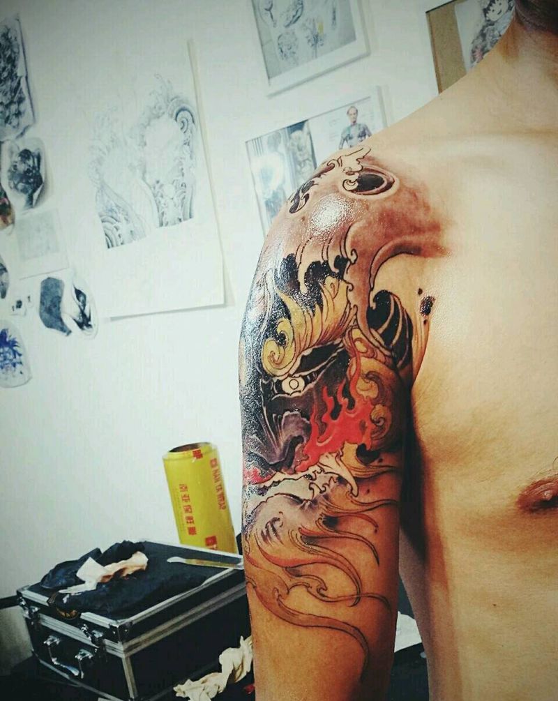 当前位置: 首页 >湖南省长沙市纹身店-木三刺青纹身工作室纹身图案>遮盖 般若饕餮纹身图片