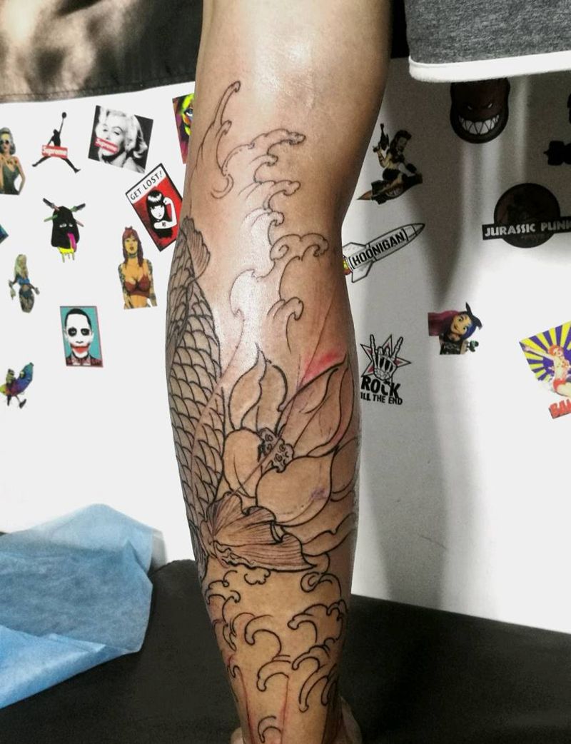 一组15张莲花纹身手