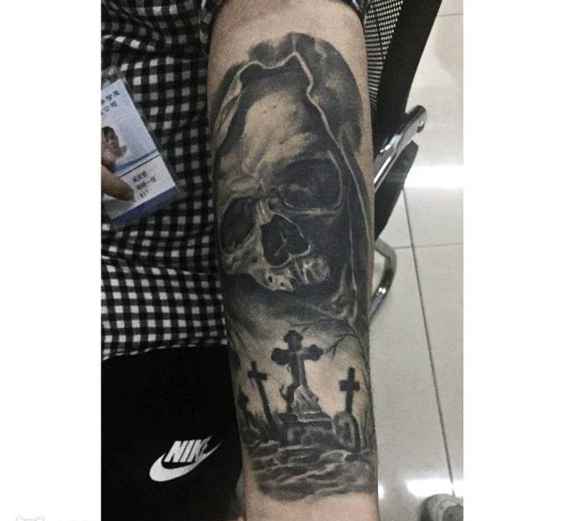当前位置: 首页 >湖南省长沙市纹身店-木三刺青纹身工作室纹身图案>骷髅死神纹身图片
