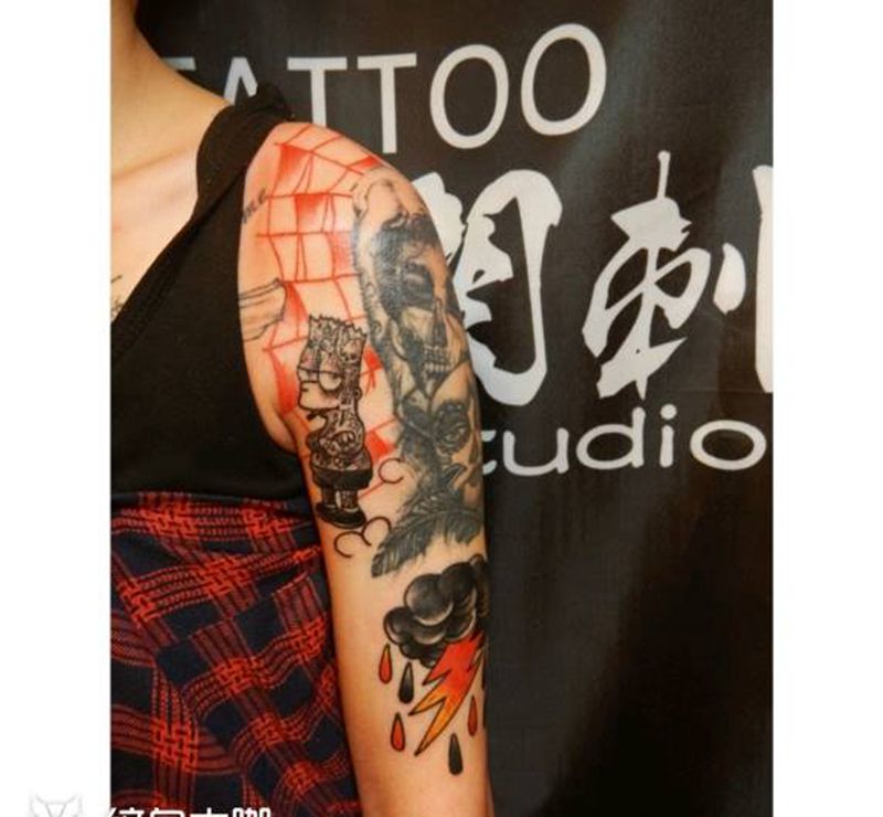 当前位置: 首页 >湖南省长沙市纹身店-木三刺青纹身工作室纹身图案>school花臂 旧图添加未完纹身图片