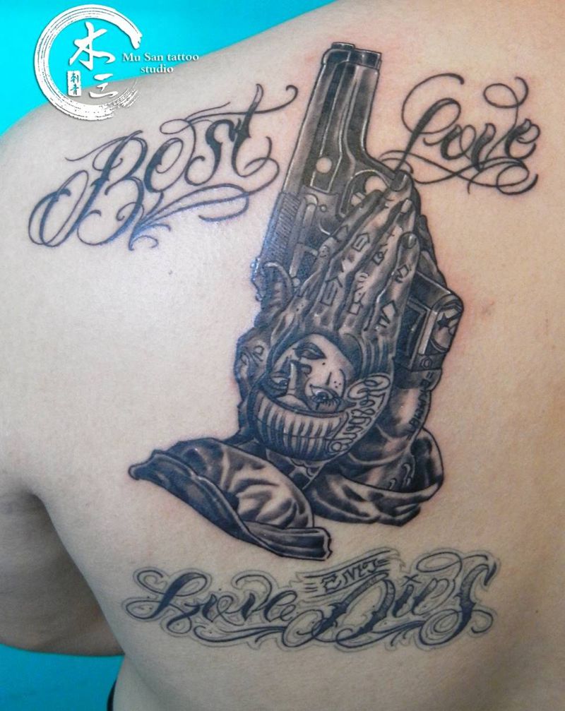 当前位置: 首页 >湖南省长沙市纹身店-木三刺青纹身工作室纹身图案>花体 匪帮祈祷之手 恢复了纹身图片_背部祈祷之手纹身图案