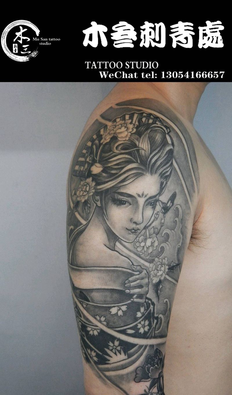 当前位置: 首页 >湖南省长沙市纹身店-木三刺青纹身工作室纹身图案>牡丹遮盖 艺伎纹身图片_新传统纹身图案